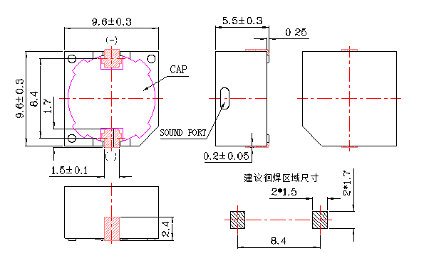9 | Dimension | mm | 9.6x 9.6x H5.5 | See appearance drawing |